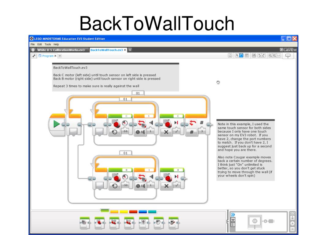 Cougar Robotics Advanced Programming Workshop examples. Converted from NXT to EV3 by David Fort Mentor, FRC/FTC 1001 September 2013. Basic Program. 02 Simple Structure-Loop. 03-Variables. 03.1-Sensor and Branch. Mission 1-Basic. 04-Left Face. 05_1-Go to Dark. 05_2-Go to Dark.