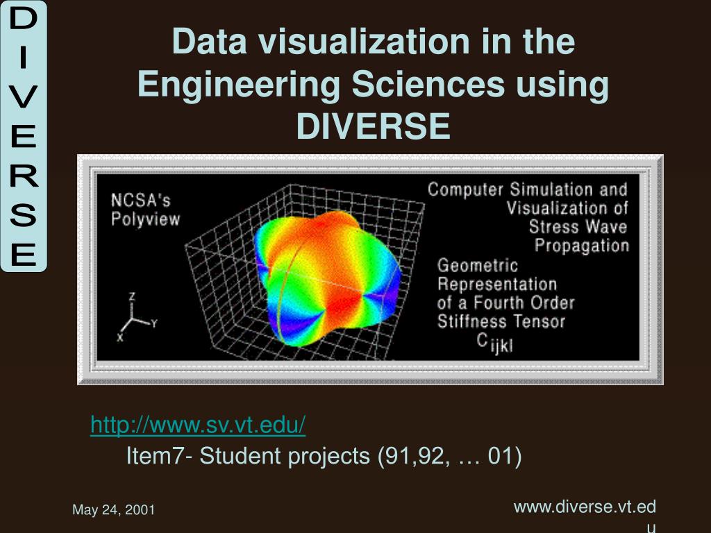 Data visualization in the Engineering Sciences using DIVERSE • http://www.sv.vt.edu/ Item7- Student projects (91,92, … 01)