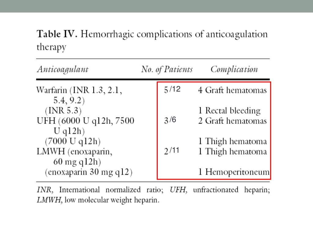 Thrombosen bei Niereninsuffizienz • Shunt-Thrombosen • Zentrale Venenthrombosen bei iv. Zugängen • Thrombosen des extrakorporalen Kreislaufes • Venöse Thromboembolie (TVT, PE, etc.) • Graft failure • Graft-Thrombosen • Abstossung