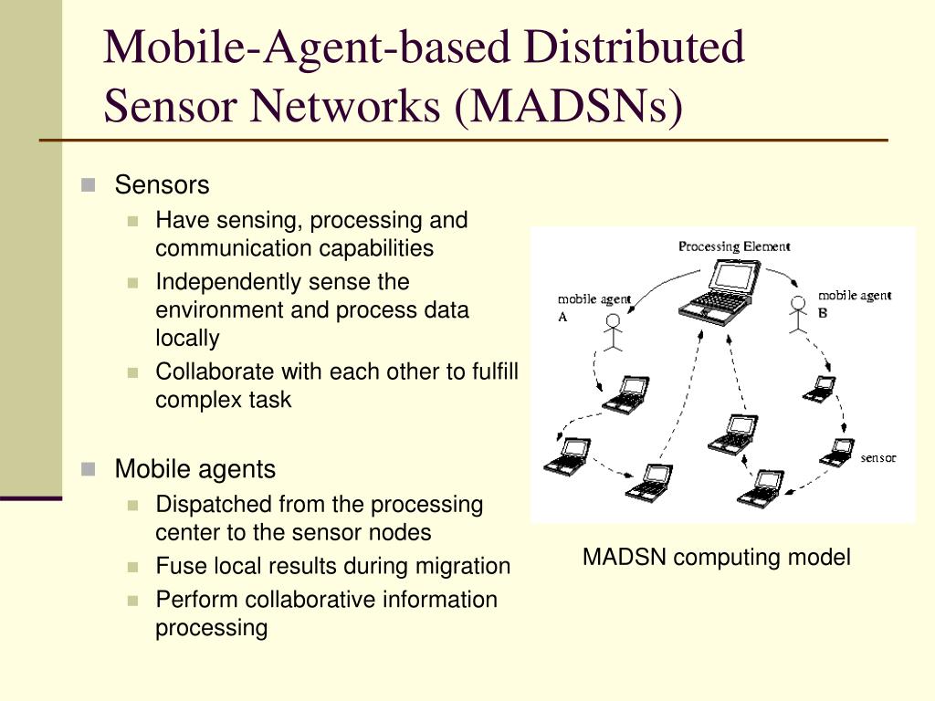 Modeling Mobile-Agent-based Collaborative Processing in Sensor Networks Using Generalized Stochastic Petri Nets. Hongtao Du, Hairong Qi, Gregory Peterson Department of Electrical and Computer Engineering University of Tennessee, USA. Mobile-Agent-based Distributed Sensor Networks (MADSNs).