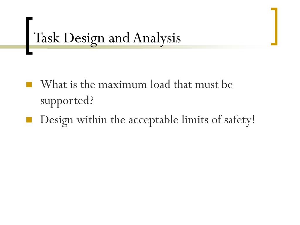 Task Design and Analysis • What is the maximum load that must be supported? • Design within the acceptable limits of safety!