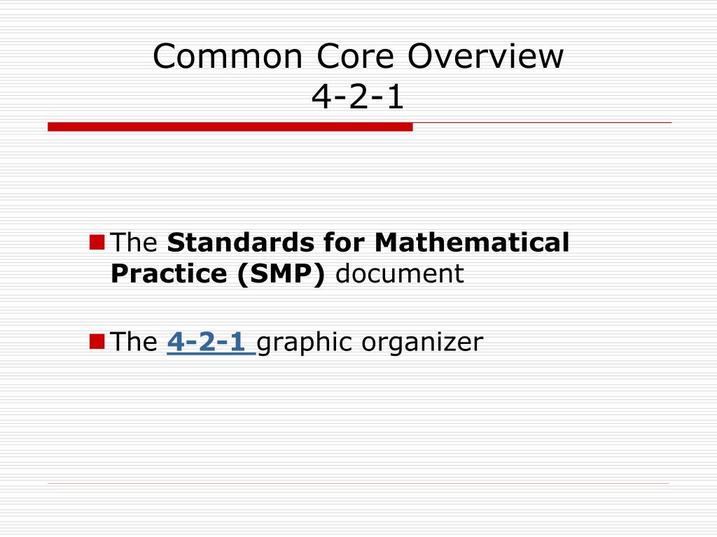Common Core Overview4-2-1 • The Standards for Mathematical Practice (SMP) document • The 4-2-1graphic organizer