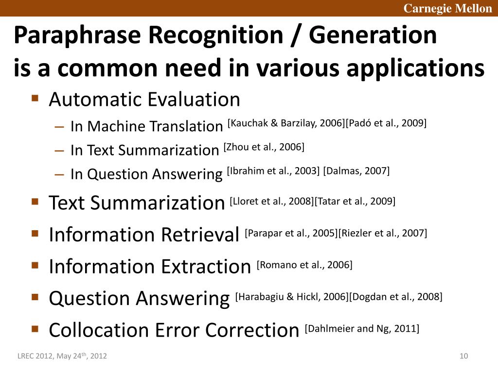 Carnegie Mellon Diversifiable Bootstrapping for Acquiring High-Coverage Paraphrase Resource Hideki Shima Teruko Mitamura Language Technologies Institute School of Computer Science Carnegie Mellon University, USA
