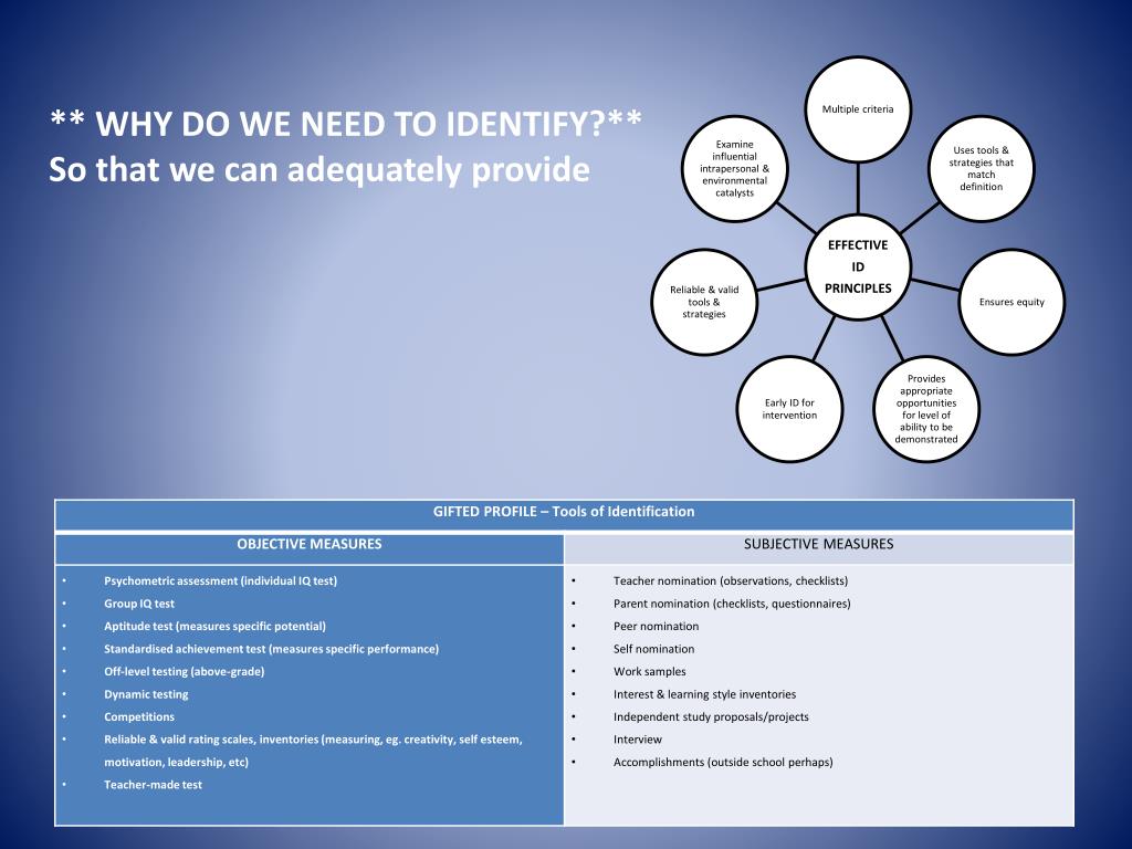 ** WHY DO WE NEED TO IDENTIFY?**So that we can adequately provide