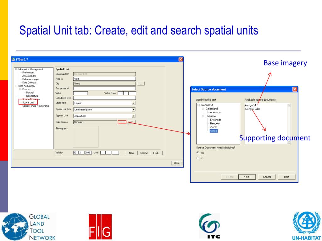 Spatial Unit tab: Create, edit and search spatial units Base imagery Supporting document