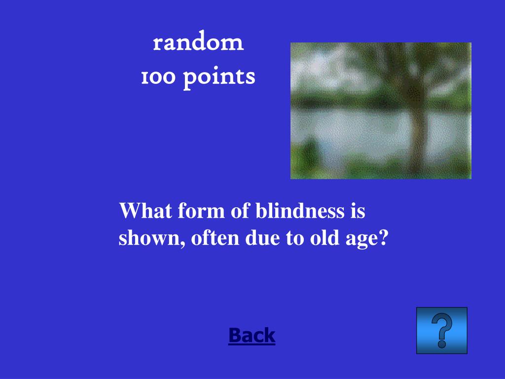 random 200 points What form of blindness do you have when you can see only peripheral vision? Back