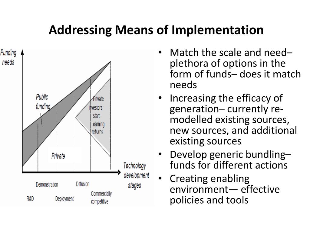 Addressing Means of Implementation • Match the scale and need– plethora of options in the form of funds– does it match needs • Increasing the efficacy of generation– currently re-modelled existing sources, new sources, and additional existing sources • Develop generic bundling– funds for different actions • Creating enabling environment— effective policies and tools