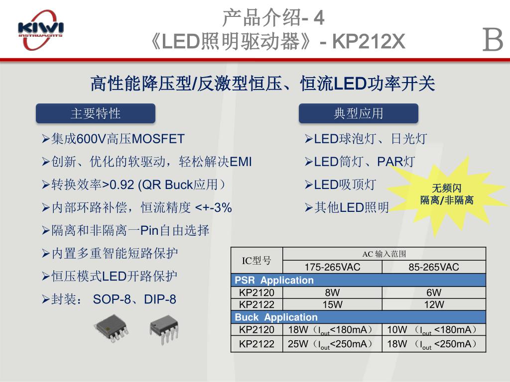 产品介绍- 4 《LED照明驱动器》- KP212X B 高性能降压型/反激型恒压、恒流LED功率开关