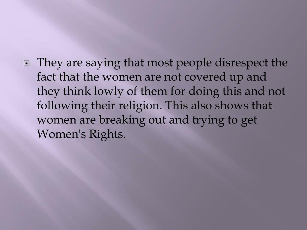 They are saying that most people disrespect the fact that the women are not covered up and they think lowly of them for doing this and not following their religion. This also shows that women are breaking out and trying to get Women's Rights.