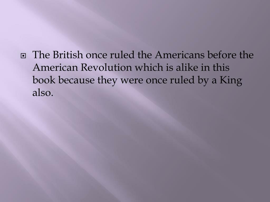 The British once ruled the Americans before the American Revolution which is alike in this book because they were once ruled by a King also.
