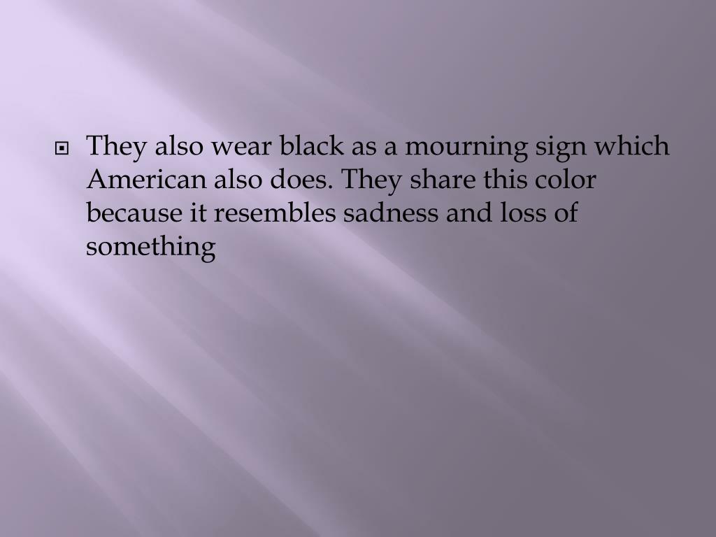 They also wear black as a mourning sign which American also does. They share this color because it resembles sadness and loss of something