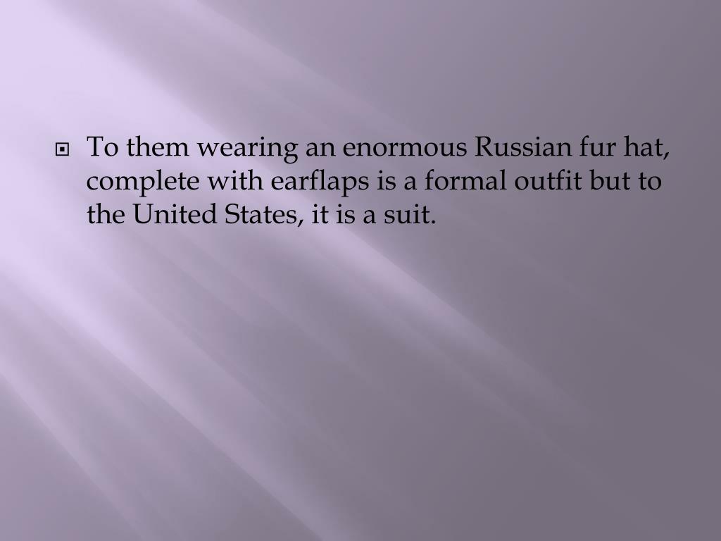 To them wearing an enormous Russian fur hat, complete with earflaps is a formal outfit but to the United States, it is a suit.