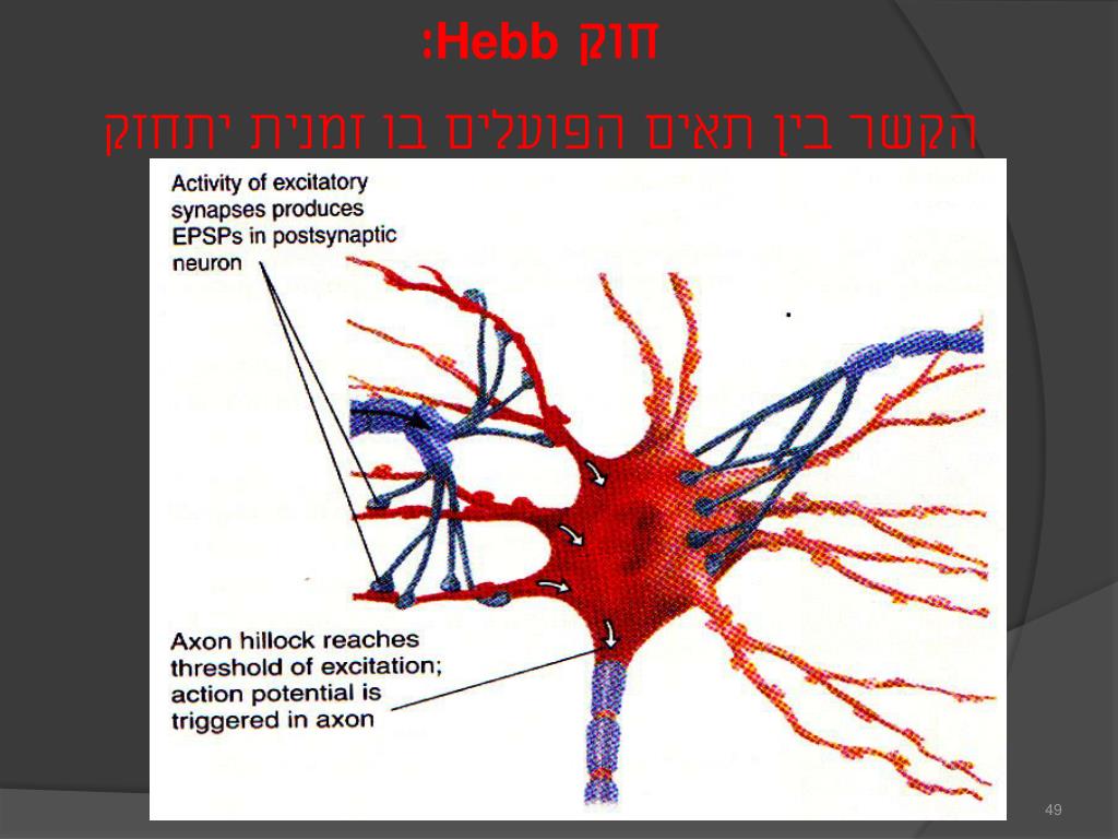 חוקHebb: הקשר בין תאים הפועלים בו זמנית יתחזק