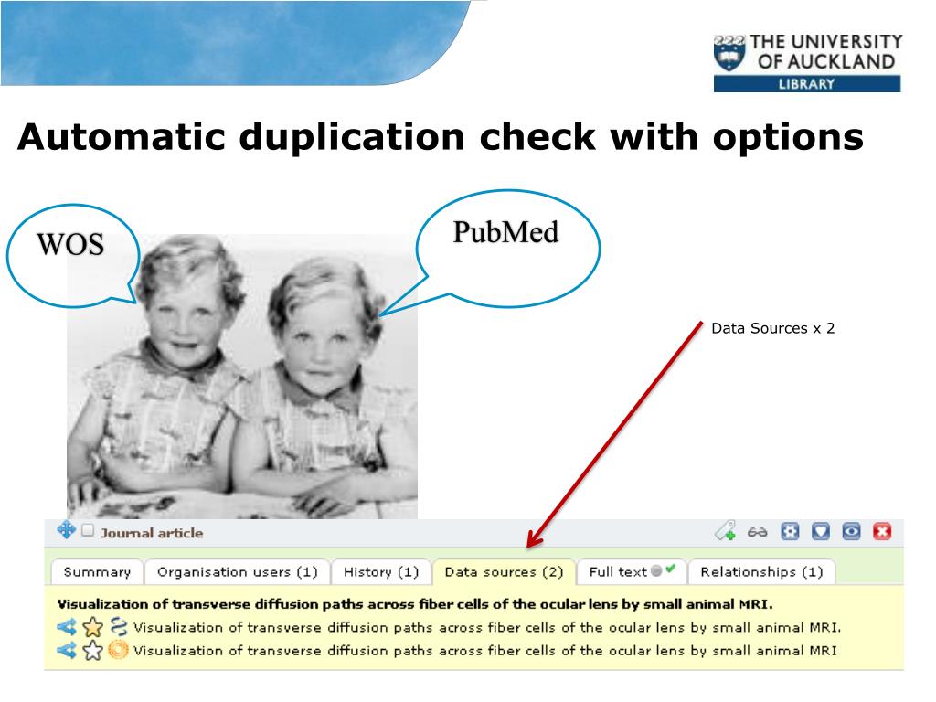 Automatic duplication check with options PubMed WOS Data Sources x 2
