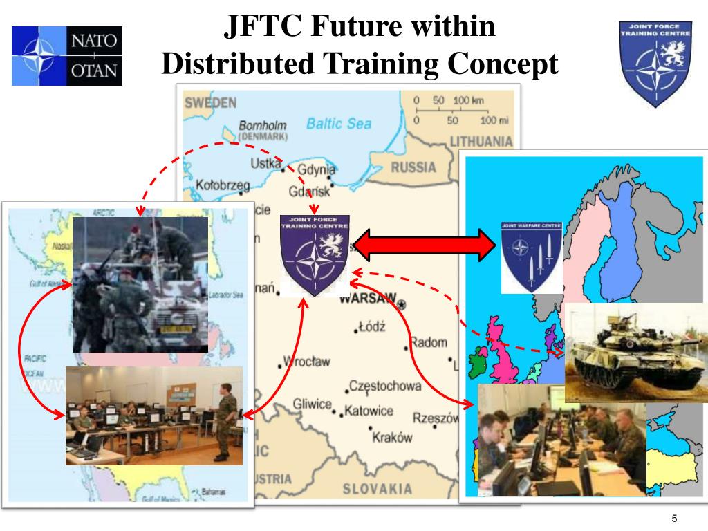 Joint Force Trainer Toolkit LIVE- Real people in real locations using real equipment Global Joint Training Network VIRTUAL - Real people in a simulated environment using simulated equipment CONSTRUCTIVE - Simulated people in a simulated environment using simulated equipment “JFTC serves as the NLVC Hub for NATO - providing a Distributive Simulation Environment that integrates C2 systems and Simulations and NATO FAS into a Virtual Battlefield”