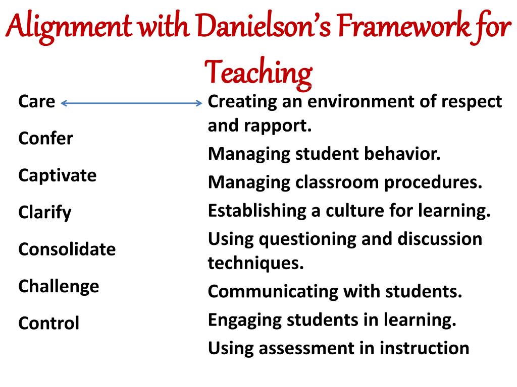 Alignment with other frameworks?E.g., Charlotte Danielson’sFramework for Teaching