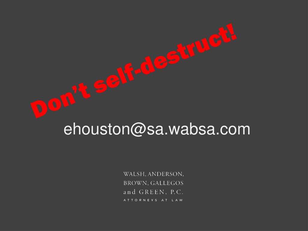 Don’t self-destruct! ehouston@sa.wabsa.com