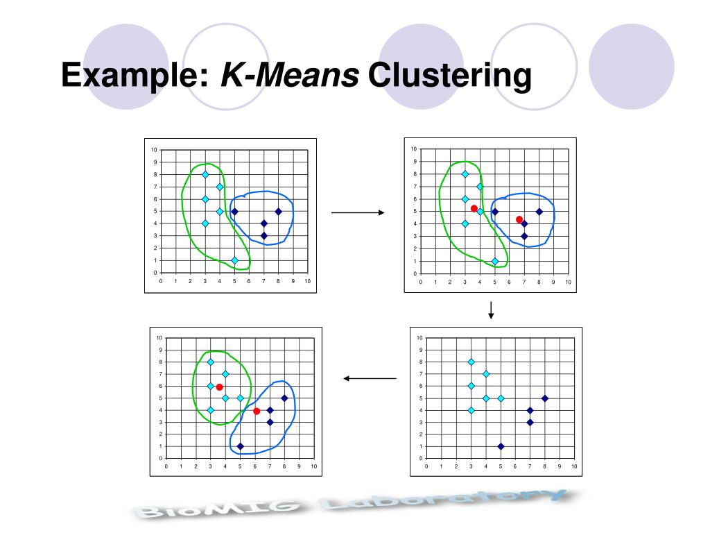 K-Means Clustering Method • A k-means algorithm is implemented in 4 steps: • Partition objects into k nonempty subsets • Compute seed points as the centroids of the clusters of the current partition. The centroid is the center (mean point) of the cluster. • Assign each object to the cluster with the nearest seed point. • Go back to Step 2, stop when no more new assignment.