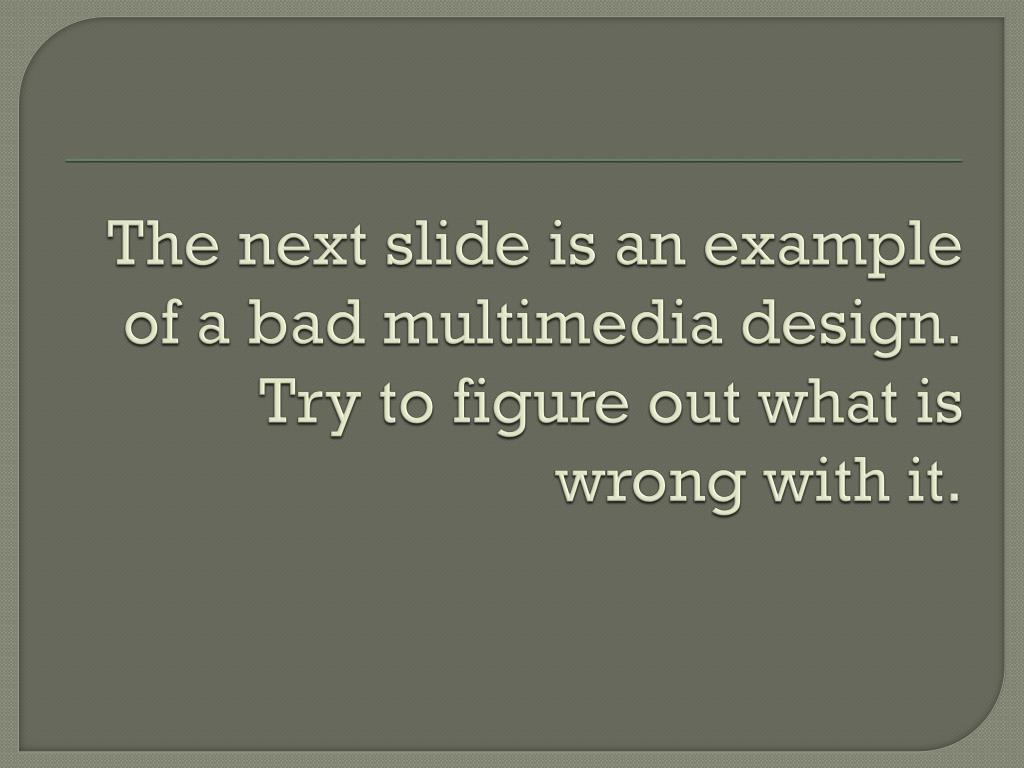 The next slide is an example of a bad multimedia design.Try to figure out what is wrong with it.