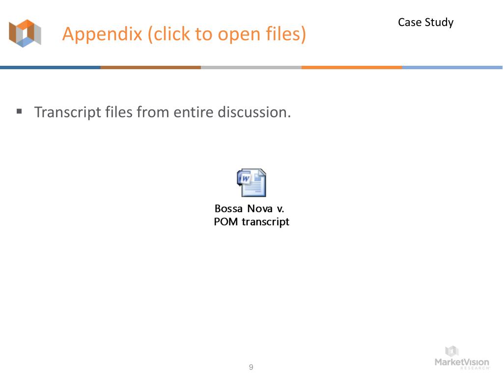 Appendix (click to open files) Case Study • Transcript files from entire discussion.