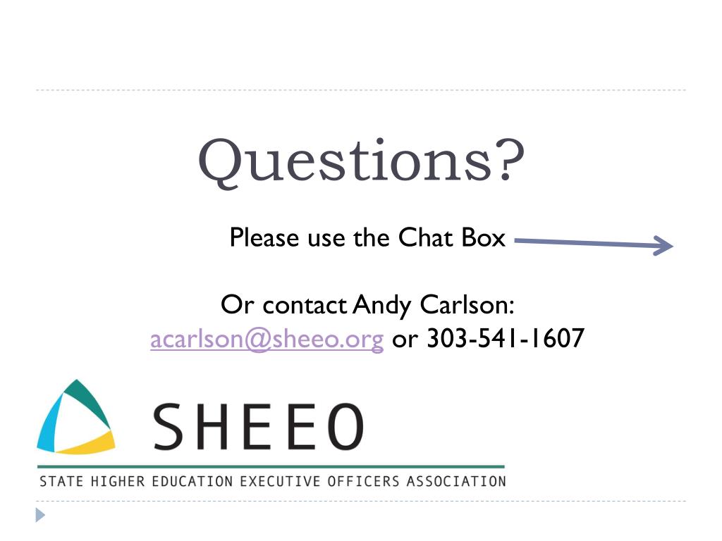 Questions? Please use the Chat Box Or contact Andy Carlson: acarlson@sheeo.org or 303-541-1607