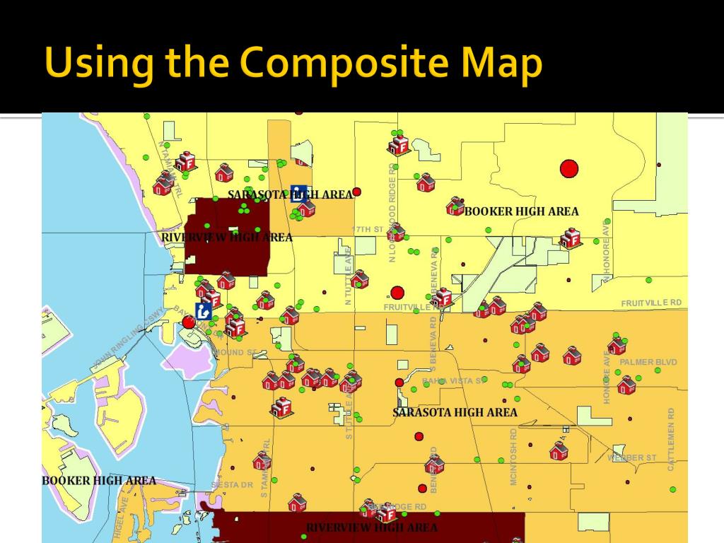 Composite GIS Map • Boundaries: • Census Tract / Block Group / Block • Zip Codes • School Attendance Zones • Voting Precincts • Neighborhood & Homeowner’s Associations • Demographics: • Total # • Age: Over 65 Years, Under 18 Years, Under 5 Years • Race / Ethnicity: Black / African-American, Hispanic / Latino, White • Households: Owners/Renters, with Kids, with Single Individuals • Assets: • Libraries • Churches • Firehouses • Parks • Schools • Businesses • Neighbor-Identified Assets • Indicators of Well-Being: • Civic Participation • Culture & Recreation • Economy • Health • Learning • Environment • Social