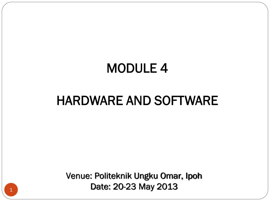 MODULE 4HARDWARE AND SOFTWARE Venue: Politeknik Ungku Omar, Ipoh Date: 20-23 May 2013