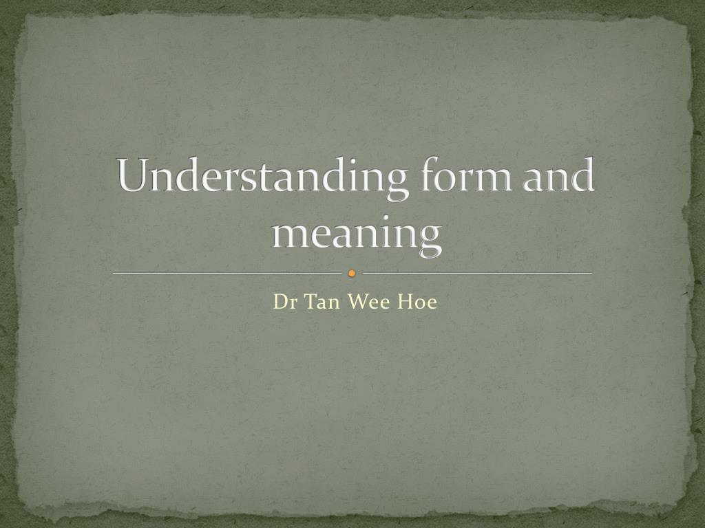Understanding form and meaning Dr Tan Wee Hoe