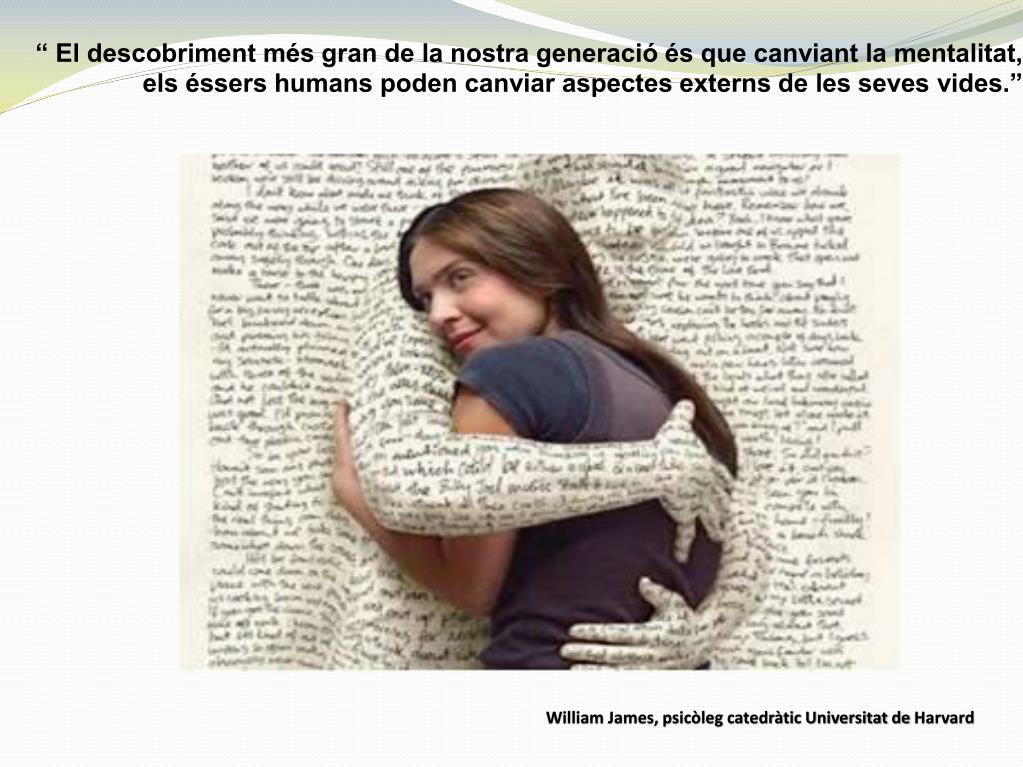 “ El descobriment més gran de la nostra generació és que canviant la mentalitat,els éssers humans poden canviar aspectes externs de les seves vides.” William James, psicòleg catedràtic Universitat de Harvard
