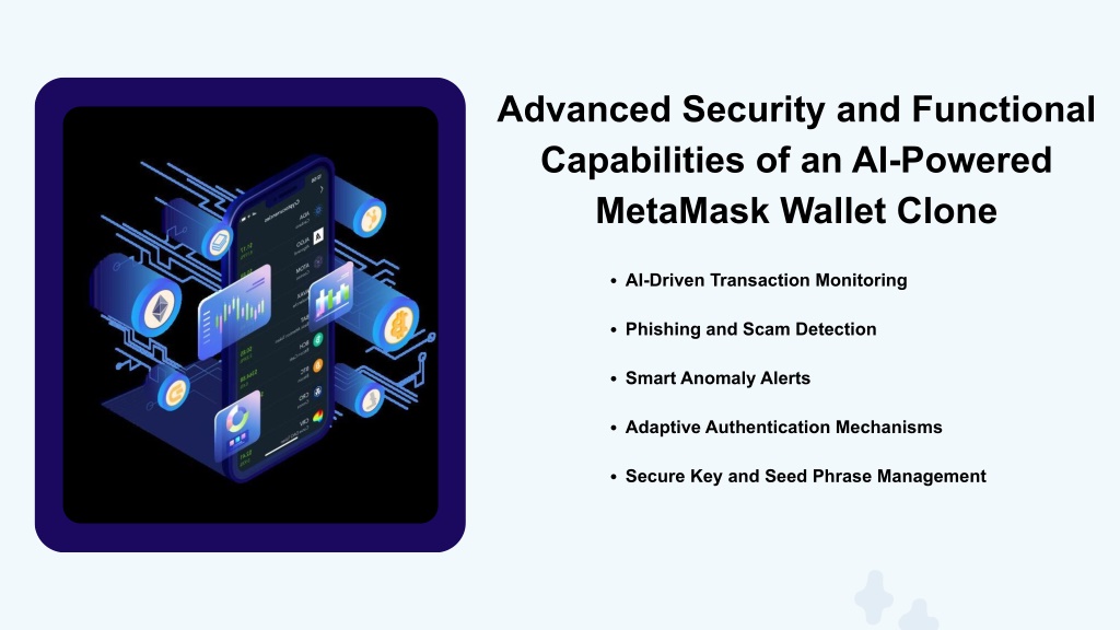 Advanced Security and Functional Capabilities of an AI-Powered MetaMask Wallet Clone AI-Driven Transaction Monitoring Phishing and Scam Detection Smart Anomaly Alerts Adaptive Authentication Mechanisms Secure Key and Seed Phrase Management