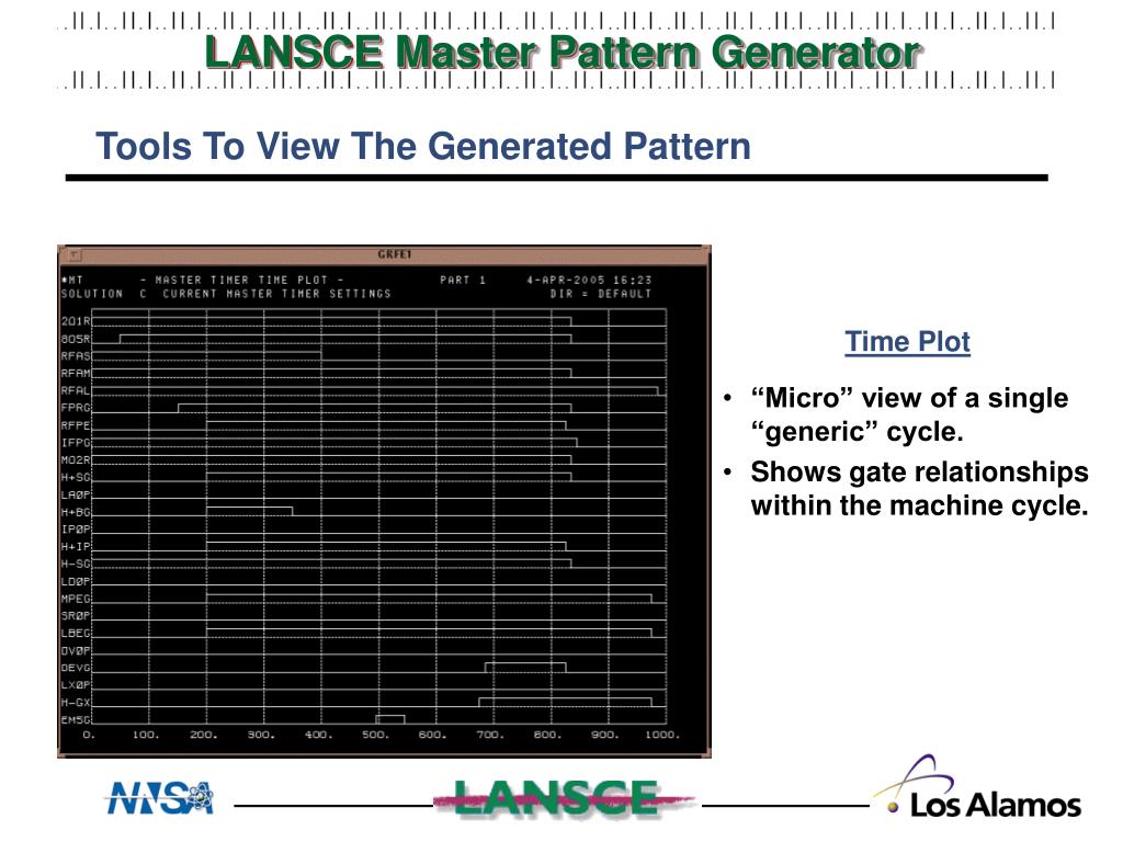 Tools To View The Generated Pattern • “Micro” view of a single “generic” cycle. • Shows gate relationships within the machine cycle. Time Plot