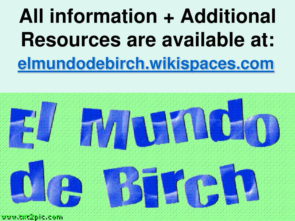 All information + Additional Resources are available at: elmundodebirch.wikispaces.com