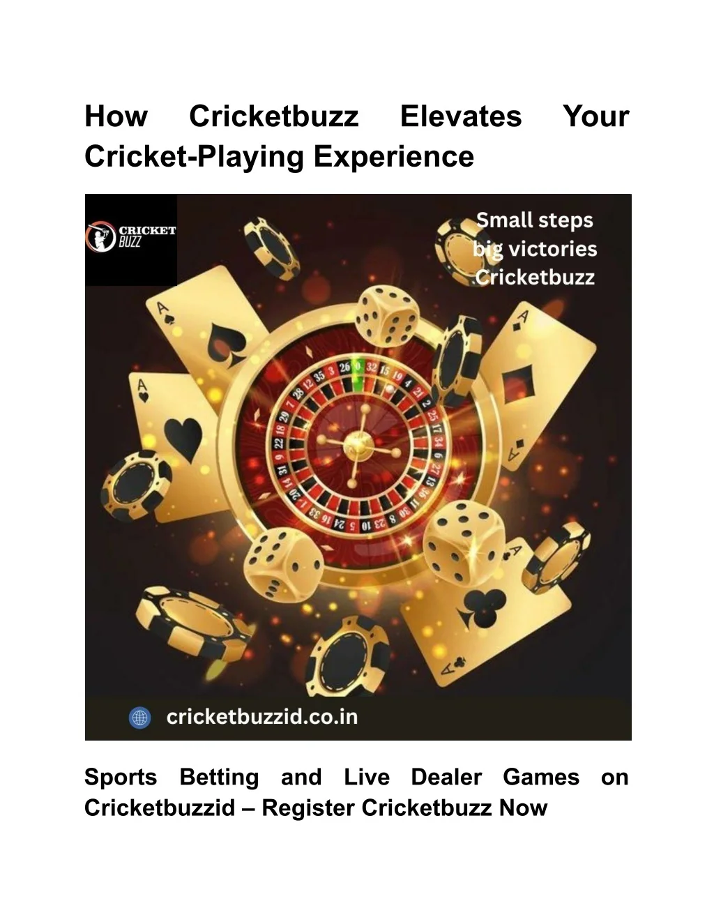 How Cricket-Playing Experience Cricketbuzz Elevates Your Sports Cricketbuzzid – Register Cricketbuzz Now Betting and Live Dealer Games on