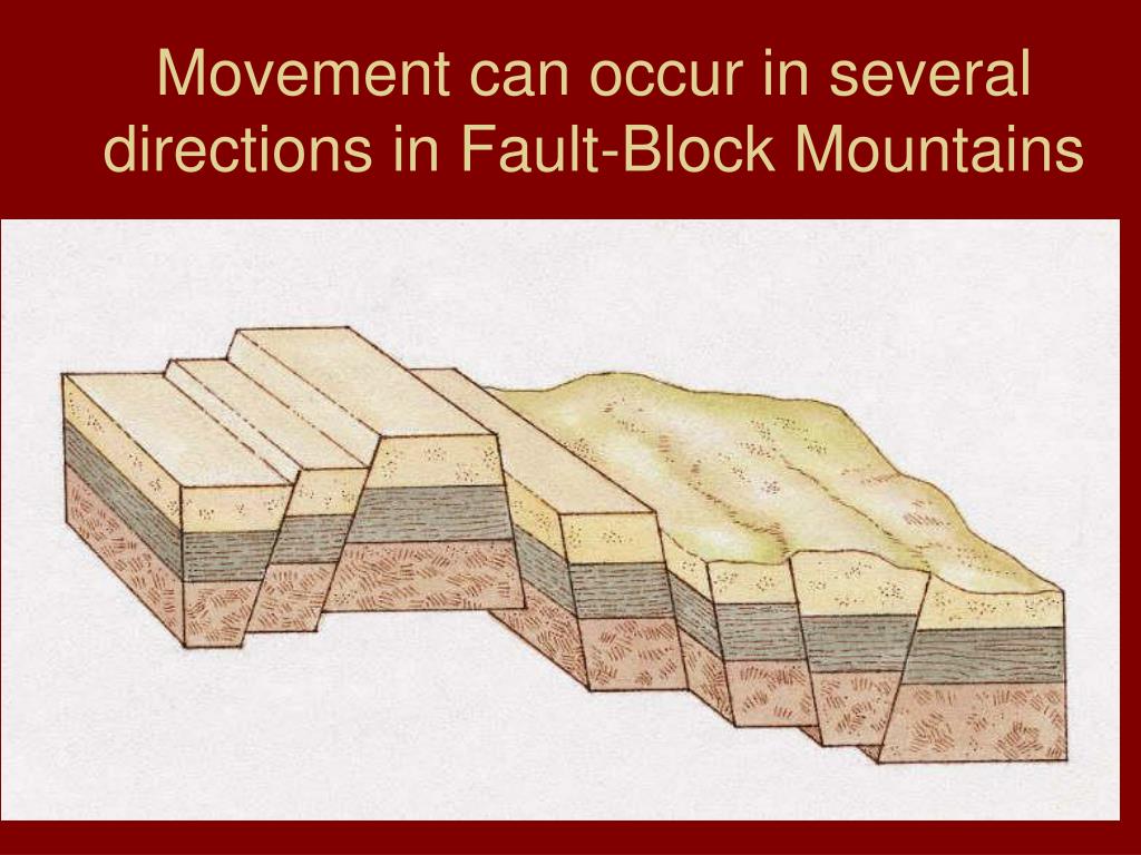 3) Fault-Block Mountains formed when normalfaults uplifta block of rock EX. Sierra Nevada Mountains