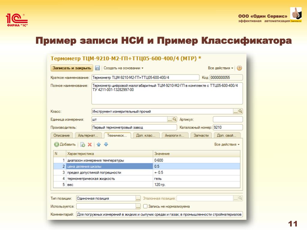 ООО «Один Сервис»эффективная автоматизация Пример записи НСИ и Пример Классификатора
