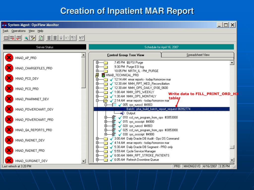 Creation of Inpatient MAR Report Read the date from FILL_PRINT_ORD_HX table and generate the report output files to the backend in Production