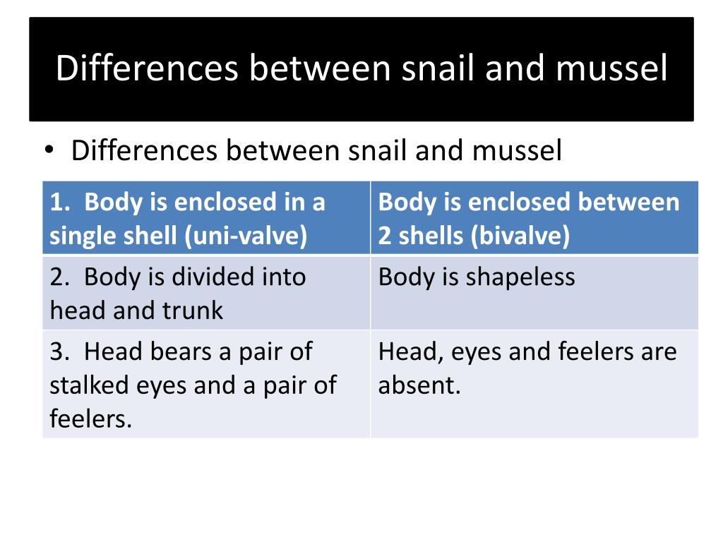 General Characteristics • General Characteristics of Snails • Internally the soft body is covered by mantle and is divided into head, foot, and visceral organs. • Head bears a pair of stalked eyes and tentacles which act as a sensory organ. • Visceral marks include 2 external types of tissues called mantle