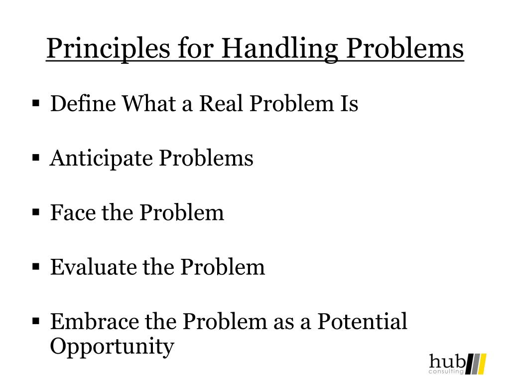 Principles for Handling Problems • Define What a Real Problem Is • Anticipate Problems • Face the Problem • Evaluate the Problem • Embrace the Problem as a Potential Opportunity