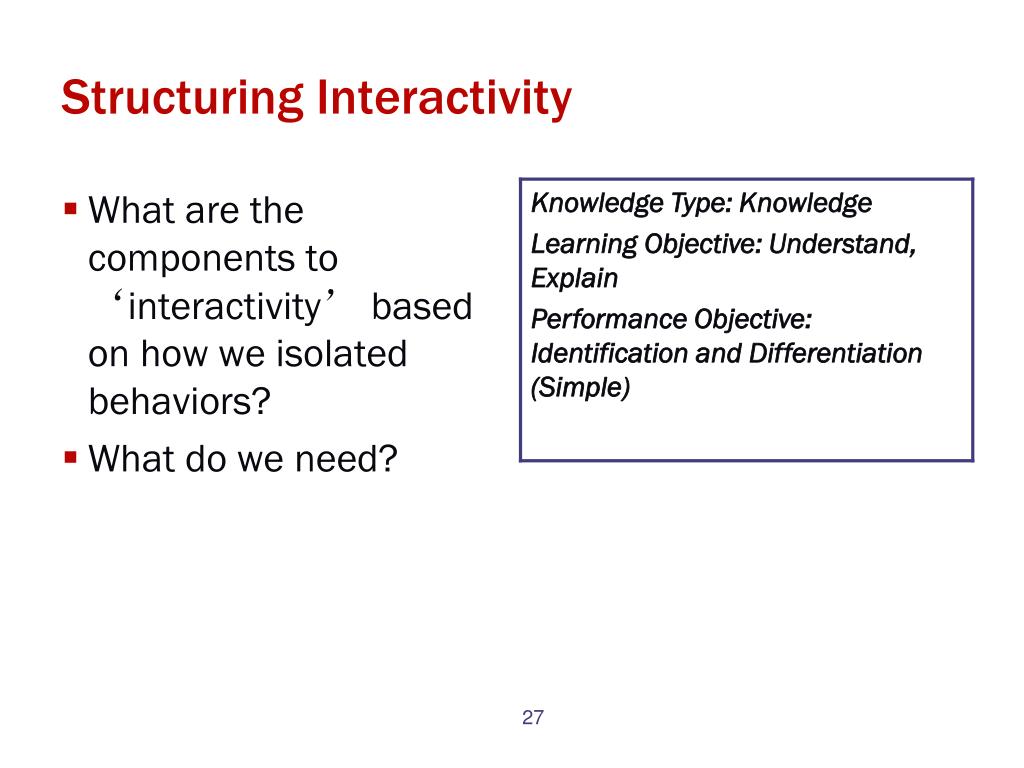 LOs are critical to designing Knowledge Types • POs will provide the framework for Interactivity based on Knowledge Types