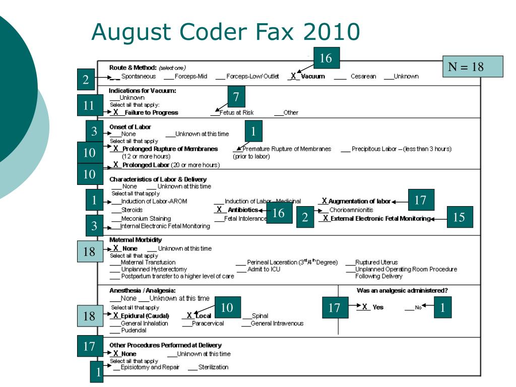 August Coder Fax 2010 P3 N=16 P4 N=11