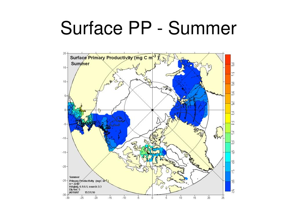 1. Empirical chlorophyll based algorithm Combined dataset Log PP = 1.36 + 1.0.LogChl • Average Chlorophyll • Resolute Bay 8.1 mg m-3 • Barents Sea 4.2 mg m-3 • Chukchi Sea1.2 mg m-3 • ANCOVA • Chl 0.8 – 32 mg m-3 • P < 0.01