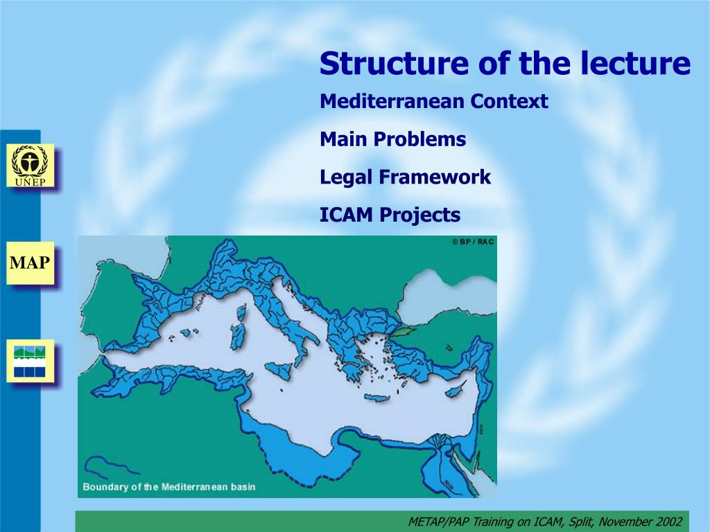 Structure of the lecture Mediterranean Context Main Problems Legal Framework ICAM Projects