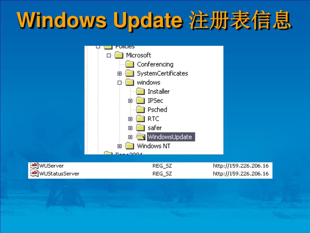 Windows Update. Software Update Services. Windows Update. 关于 Windows Update Windows Update 方法 Windows Update 注册表信息 关于 SUS SUS 安装 配置 SUS 客户端的设置 SUS 用户的使用 FAQ 现有的 SUS 名单. 关于 Windows Update.