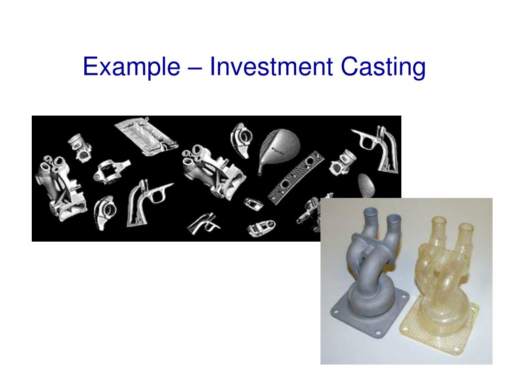 Advantages of Investment Casting • Intricate geometry • Close dimensional tolerance • Superior surface finish • High-melting point alloys