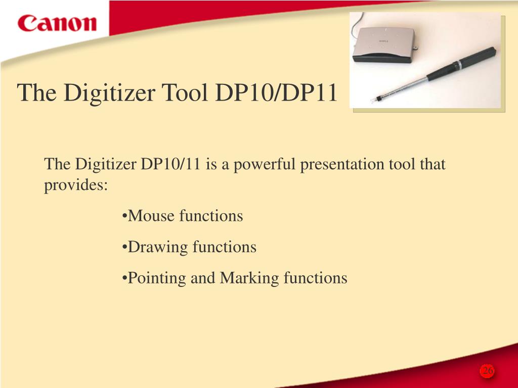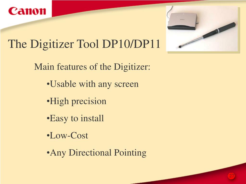 The Digitizer Tool DP10/DP11 • The Digitizer DP10/11 is a powerful presentation tool that provides: • Mouse functions • Drawing functions • Pointing and Marking functions 26