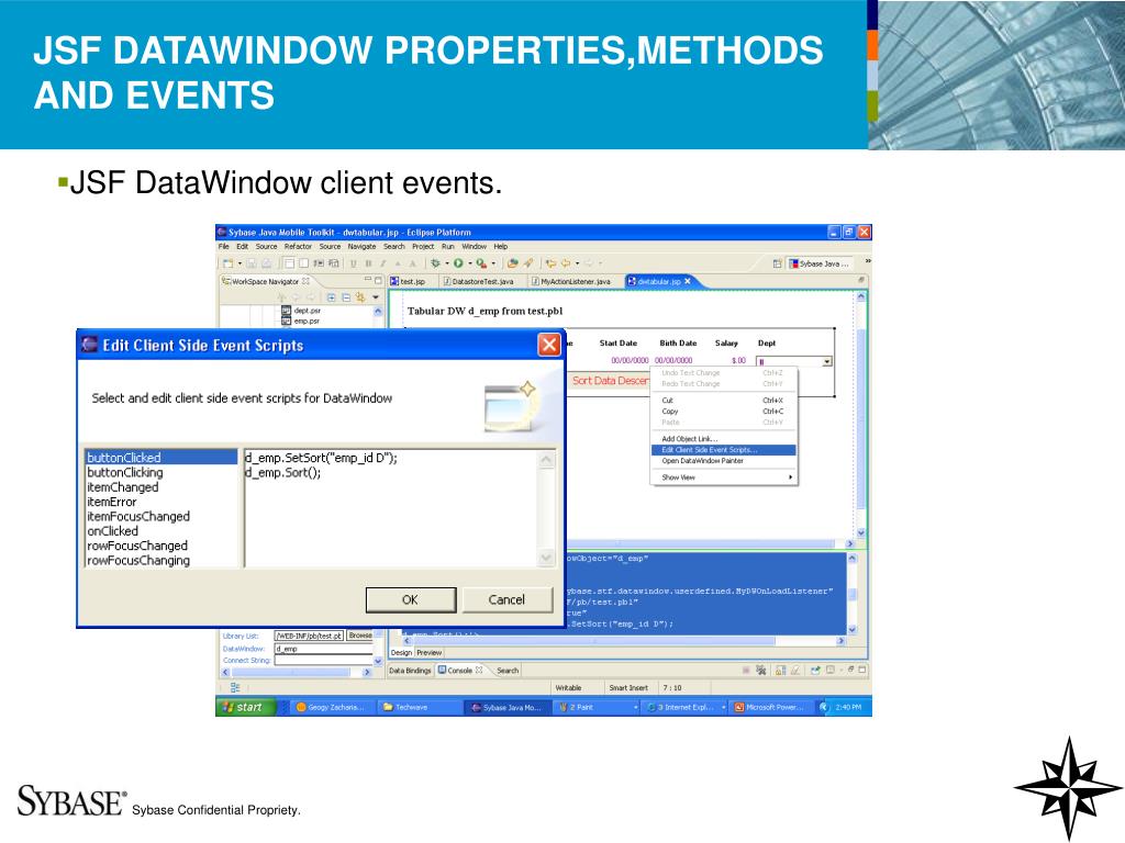 JSF DATAWINDOW PROPERTIES,METHODS AND EVENTS • JSF DataWindow client events.