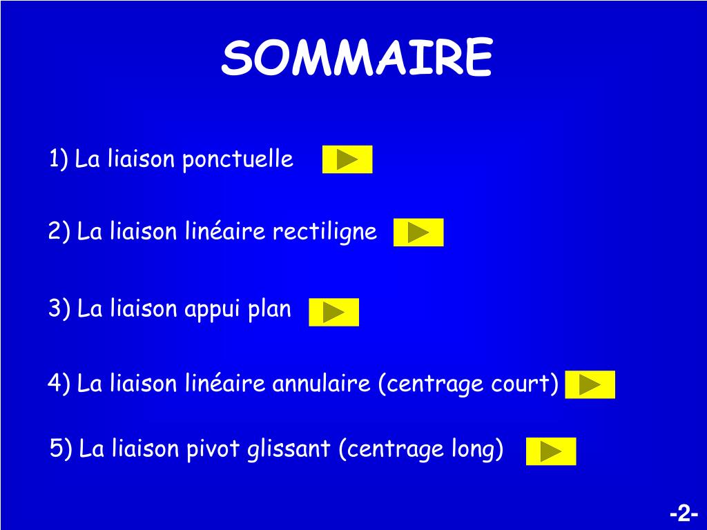 SOMMAIRE 1) La liaison ponctuelle 2) La liaison linéaire rectiligne 3) La liaison appui plan 4) La liaison linéaire annulaire (centrage court) 5) La liaison pivot glissant (centrage long) -2-