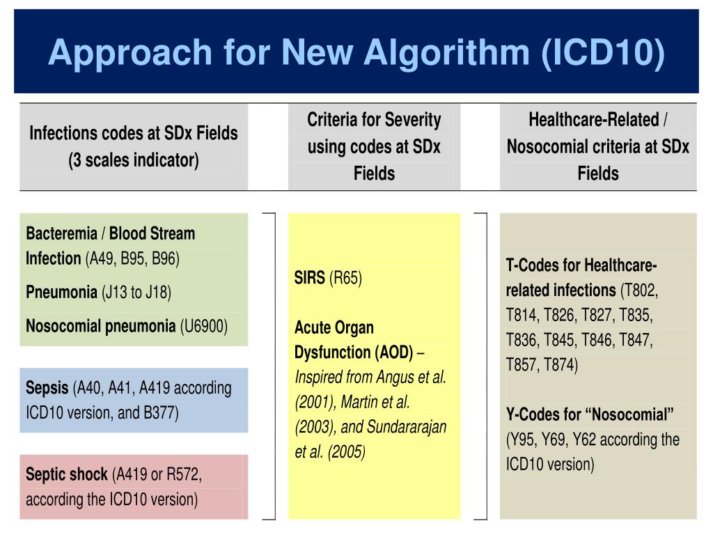 To Develop a New “PSI 13” • To refine definition from Postoperative Sepsis to Postoperative Hospital-Acquired Infections • To develop a New Algorithm • To compare New Algorithm to PSI 13 (AHRQ) • To repeat models using data from 2008 to 2010, with respect to changes in ICD-10 version used each year in Switzerland