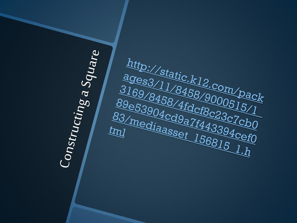 http://static.k12.com/packages3/11/8458/9000515/1_3169/8458/4fdcf8c23c7cb089e53904cd9a7f443394cef083/mediaasset_156815_1.htmlhttp://static.k12.com/packages3/11/8458/9000515/1_3169/8458/4fdcf8c23c7cb089e53904cd9a7f443394cef083/mediaasset_156815_1.html Constructing a Square
