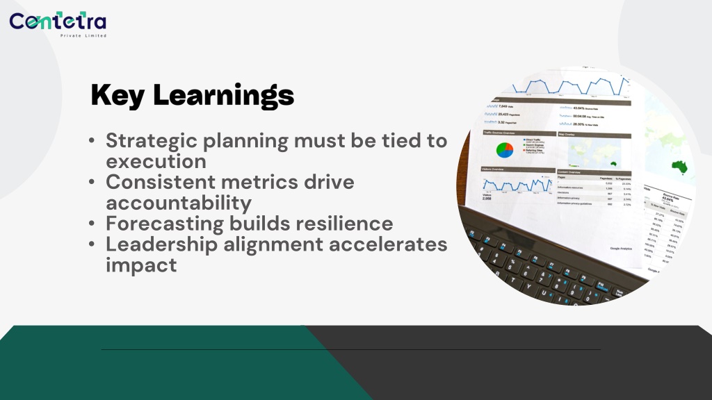 Key Learnings • Strategic planning must be tied to execution • Consistent metrics drive accountability • Forecasting builds resilience • Leadership alignment accelerates impact